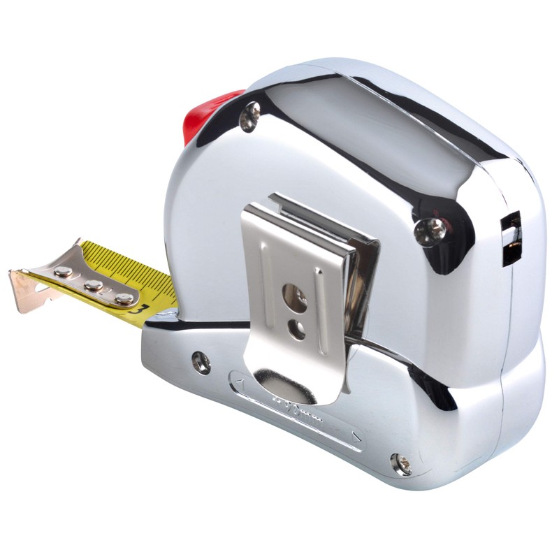 • CASING: The chrome-plated housing made of impact-resistant ABS plastic not only looks elegant, it is also very robust and fits perfectly in the hand. Thanks to the smooth surface and compact design, it is the perfect tape measure for your pocket.