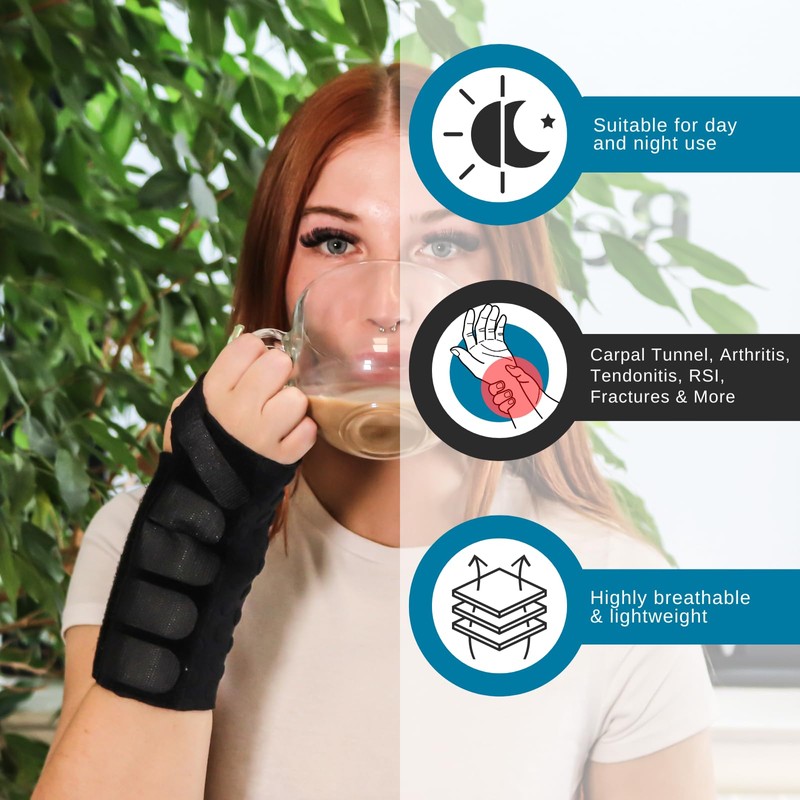 - ✅ NHS SUPPLIED WRIST SUPPORT FOR COMMON CONDITIONS – Lightweight and flexible, that adapts to your wrist like a second skin, this industry-leading and NHS supplied wrist splint provides therapeutic compression throughout the day and night, making it the perfect support for common conditions including, carpal tunnel syndrome, rheumatoid arthritis, tendonitis, repetitive strain injury (RSI), strains, sprains, joint pain, fractures, breaks, ligament damage, ganglion cysts, tennis elbow, sports injuries & more.