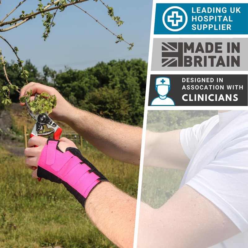 Solace Bracing Cool-Flow Wrist Support (6 Colours) - British Made & NHS Supplied Breathable Wrist Brace Splint - #1 for Carpal Tunnel, Arthritis, Tendonitis, RSI, Fractures & More - Pink, XL, Left