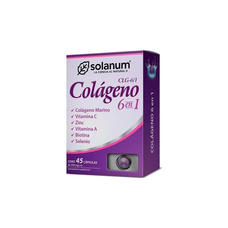 Solanum Colágeno 6 En 1 Vit.c, Zinc, Vit. A 45 Capsulas Sin sabor