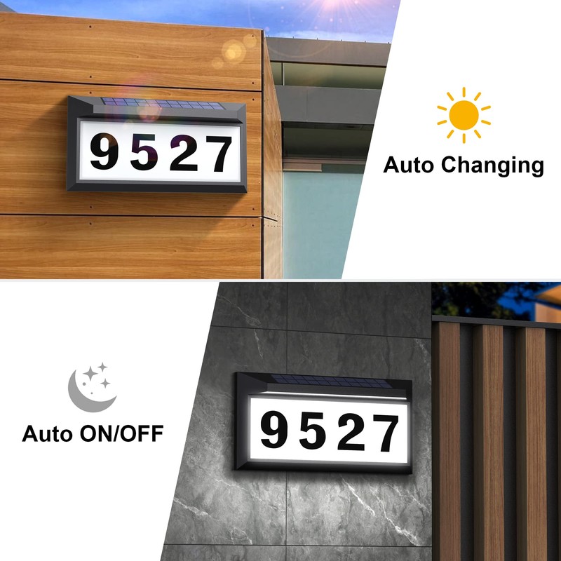 Solar Address Sign, Lighted Address Plaque Outdoor Waterproof, Illuminated Address Numbers, House Numbers for Outside