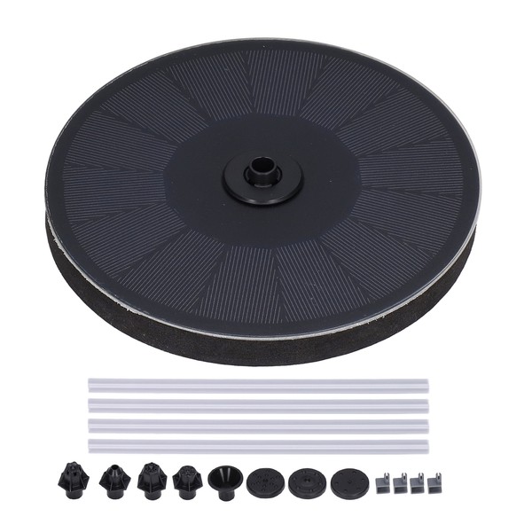 1、Auto Operation: The water pump will automatically start up under the sun, and non battery or power supply is required. 2、Ideal Fountain: Large flows and long discharge head will build you a pretty bird bath fountain with endless enjoyment. 3、Varied Nozzles: Comes with nozzles in different sizes, which will pump various streams to attract lovely creatures. 4、Extensive Uses: Allows for flexible application in a variety of places, such as garden, pool, fish tank, aquarium, etc. 5、Durable Works: Built in brushless motor has a low power consumption and a long service life more than 10000 hours.