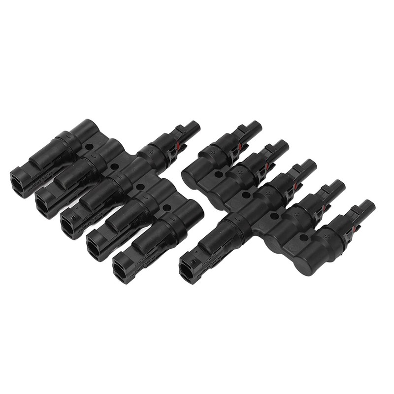 - TECHNICAL PARAMETERS: Solar T branch connector, 1 male to 5 female(MFFFFF) and 1 female to 5 male(FMMMMM), compatible with 14AWG to 10AWG solar cables or connectors , can be used for paralleling solar panels