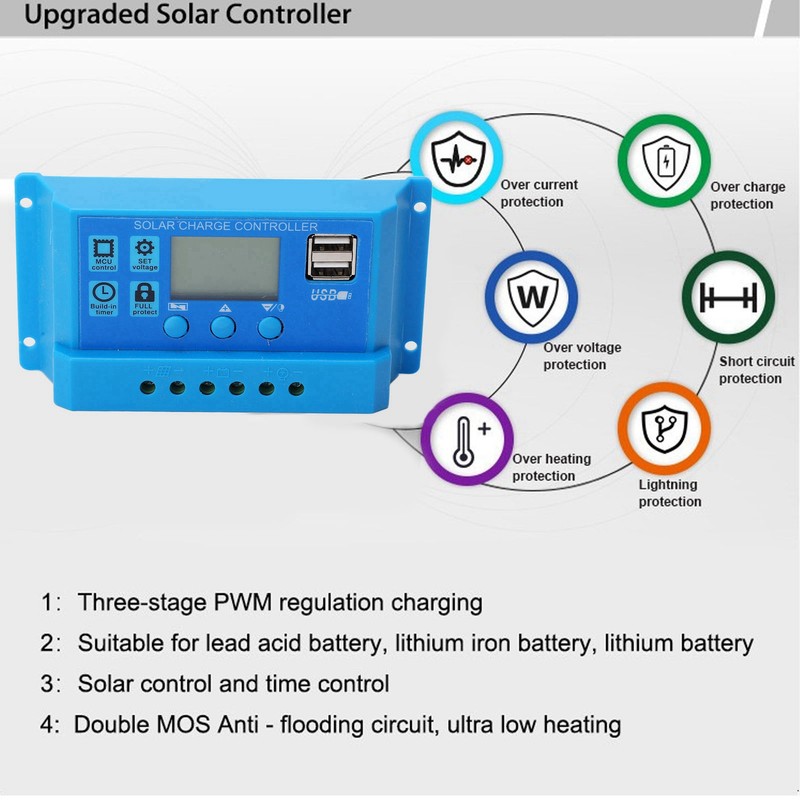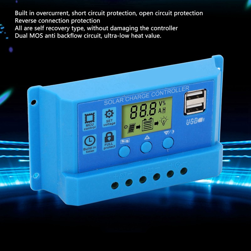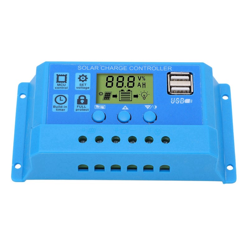 Solar Charge Controller PWM LCD Display Parameter Adjustable 2 USB Solar Charge Regulator Blue 12V 24V