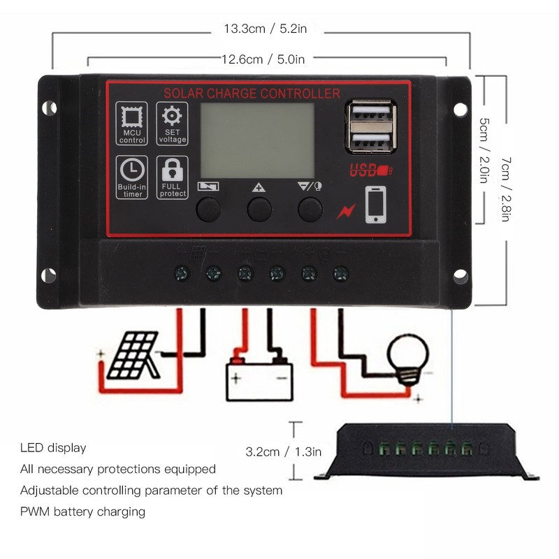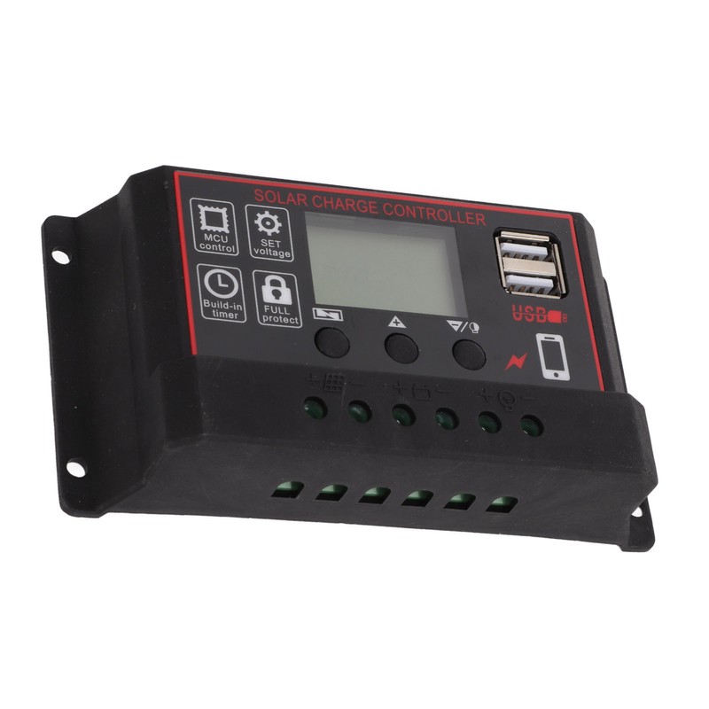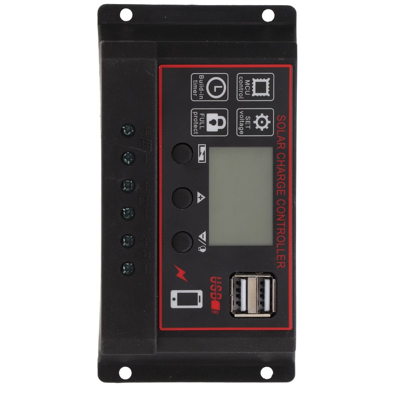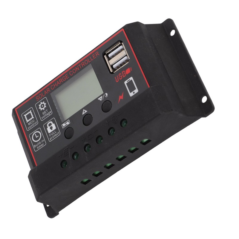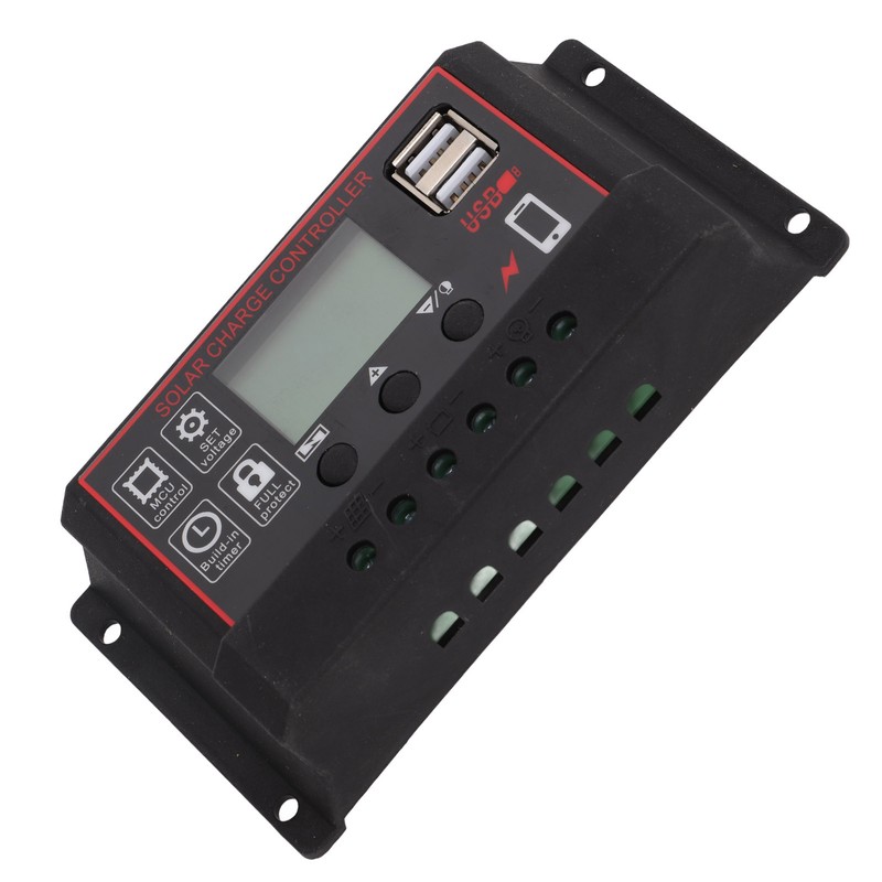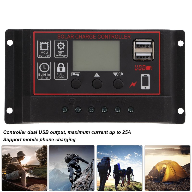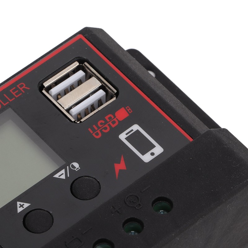 1、High Performance: Using industrial grade main control chip, high quality components to improve system performance, the highest conversion efficiency is up to 98%, ultra fast tracking speed to ensure tracking efficiency. The controller is 12V/24V automatic identification, compatible with 12V 24V system. 2、LCD Display: The controller has a large LCD display, and the charging and discharging parameters are adjustable. With power off memory function, the status and data can be clearly displayed, and the mode and parameter configuration can be easily switched. It is suitable for home, industry, and business. 3、Multiple Protection Functions: The controller's complete 3 stage charging management improves system efficiency and extends battery life. Built in multiple protection functions, over current, short circuit protection, open circuit protection, reverse connection protection, all of which are self recovery and do not damage the controller. 4、Input and Output: The controller has dual USB outputs, the maximum current is up to 25A, supports mobile phone charging, and uses dual for MOS anti backflow circuits with ultra low heat. The controller will heat up during operation, please pay attention to install the charge controller in a flat, well ventilated place. 5、Easy to Install and Operate: The charge controller should be connected to the battery first, then the solar panel, and finally the load! The disassembly sequence is opposite to the wiring sequence.
