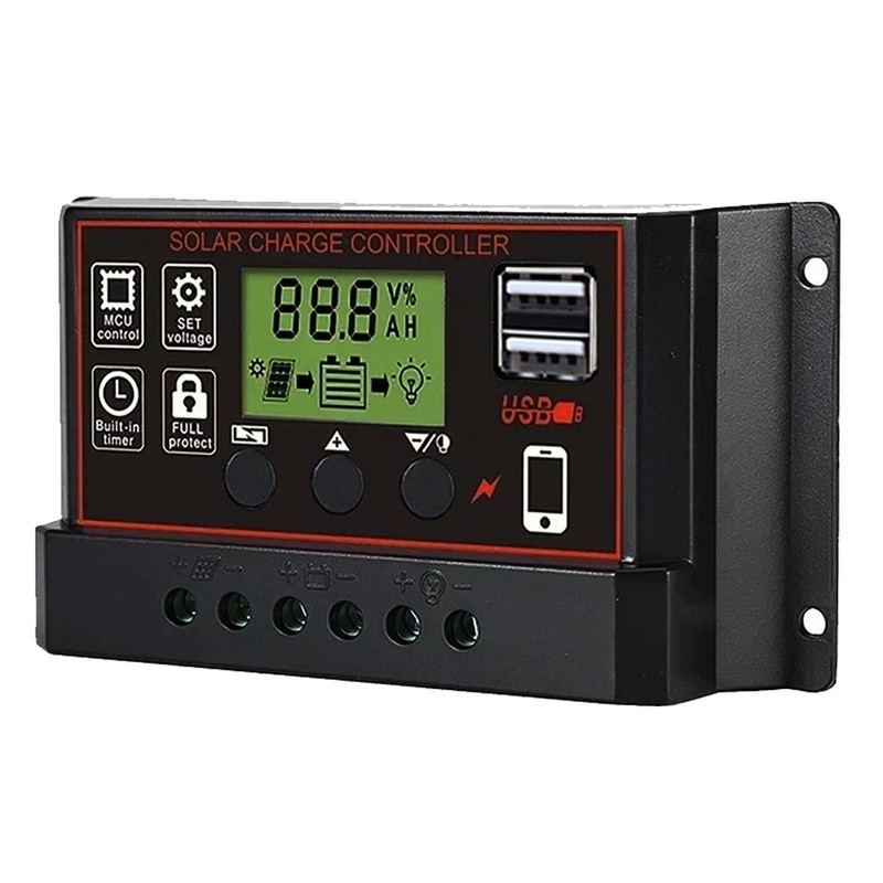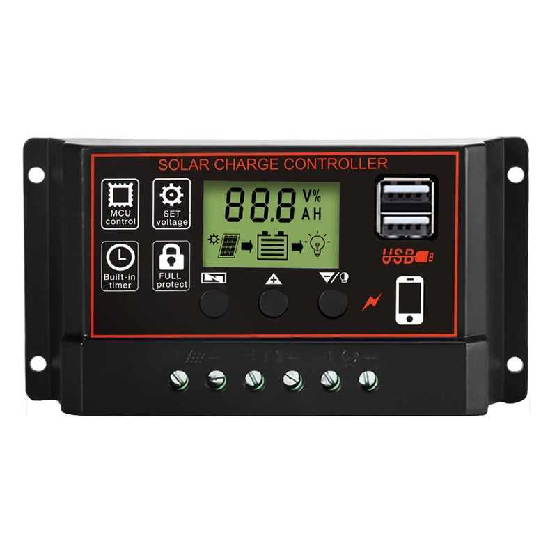 - 【Solar Controller】 The solar charger controller is compatible with 12V and 24V systems. This solar charge controller helps you manage the operation of solar panels and batteries automatically with the built - in industrial microcontroller in solar systems. It has dual USB ports to support mobile phone charging.
