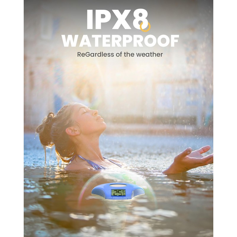 Solar Digital Pool & Spa Thermometer, Weather Resistant Floating Thermometer, IPX-8 Water Proof, 10s Measuring Cycle, Solar Powered with Over 180 Days Battery Life