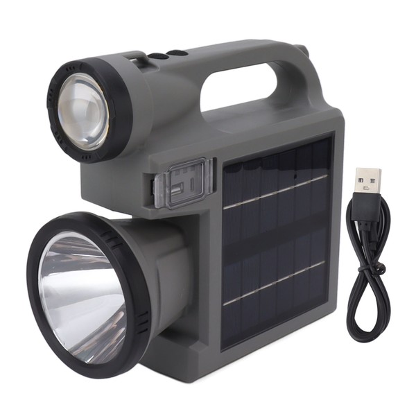 1、Ultra Bright Spotlights: Upgraded COB+LED rechargeable spotlights has output 8,000 lx over 1,640 feet. The spotlight flashlight has a front light and side light, which you can use to meet different lighting requirements. 2、3 Light Modes and COB Side Light: The flashlight can switch between 4 modes: strong light, low light, strobe and COB side light. LED spotlights can be used for night fishing, night riding, wild camping and emergencies. COB side lights provide a wide range of illumination. 3、Waterproof Flashlight: The portable spotlight is made of impact resistant ABS material. IPX5 waterproof spotlight flashlight is capable of working on heat, rain or snow days. This spotlight is the perfect lighting tool for hiking, camping, sailing or hunting. 4、Two Charging Methods: Built in 3000mAh high capacity rechargeable battery, equipped with large double sided solar charging panel. It can be charged with the included USB cable or solar energy. 5、Portable Emergency Power Supply: This rechargeable flashlight also acts as a portable power bank to charge your device. Ergonomic design, easy to control with one hand, light material, lightweight, easy to carry and operate.