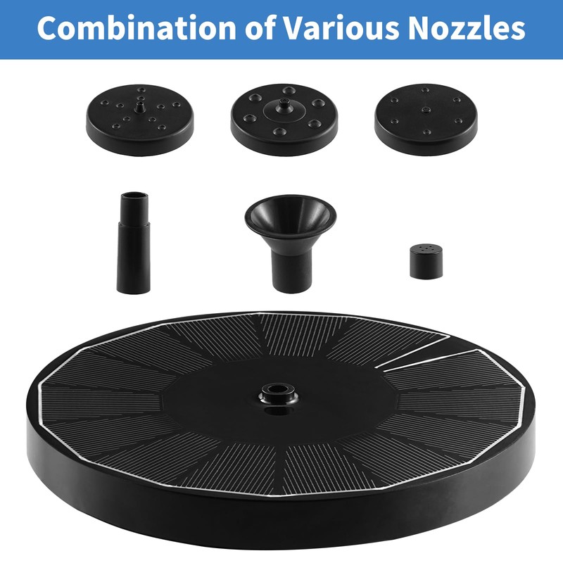 - 🌞6 Types of Nozzles - The solar fountain contains 6 different nozzles that produce different spray shapes and modes, and the height can be adjusted by replacing the nozzles. The installation is very easy, and you can easily choose different fountain patterns to add more fun to your garden.