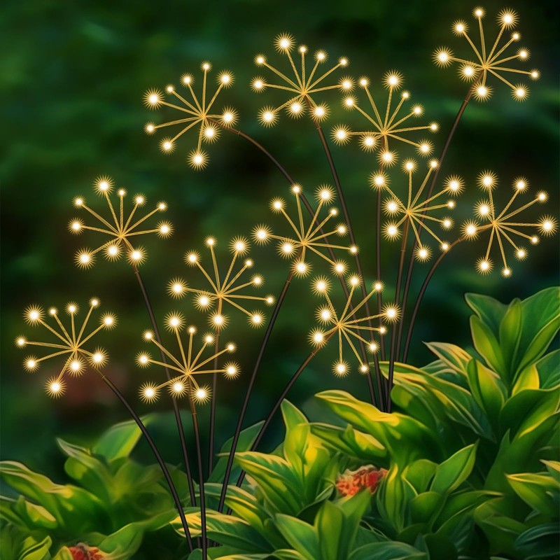 - 2 Lighting Modes Solar Firework Lights - solar garden lights for outdoor decorative with 2 lighting modes, mode 1: Steady On, mode 2 : Flashing. The pretty solar garden lights suitable for many different occasions to light up, which creates a warm vibe and beautiful decoration for your home family party. Solar garden lights is widley used in home decoration for poch, lawn, yard, patio, pathway, garden decor.