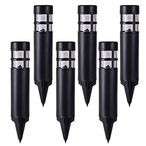 SUNWIND Solar Garden Lights Outdoor LED Bollard Solar Powered Path Lighting for Patio Pathway Backyard Lawn Landscaping (Black-6 Pack)