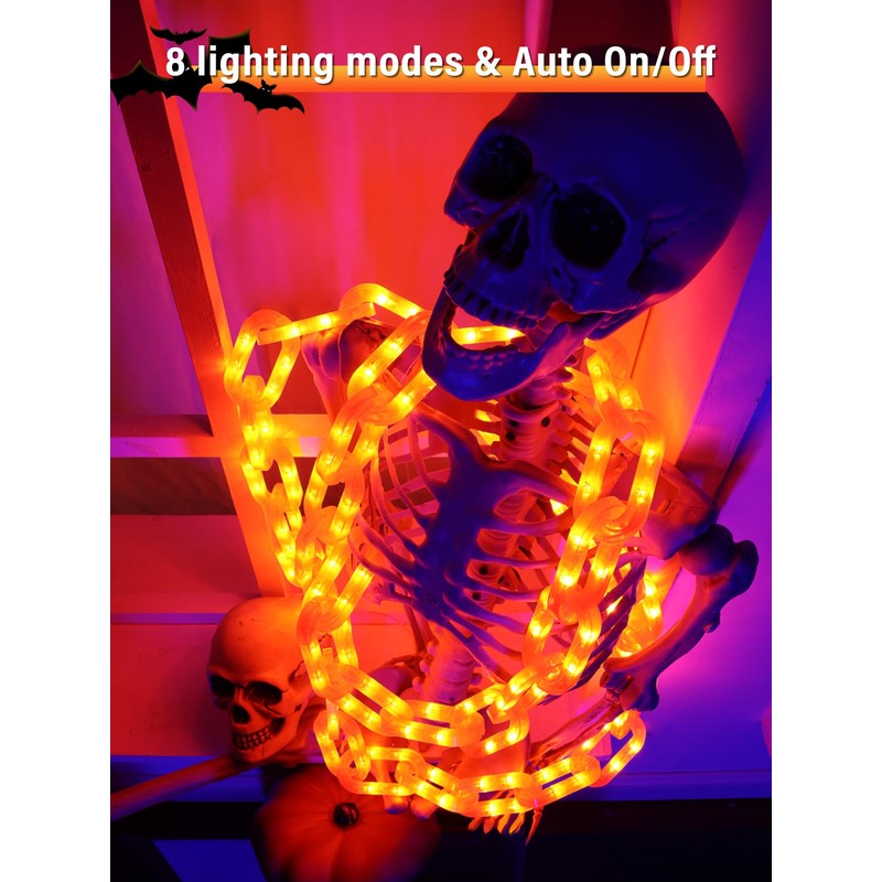 - Unique chain light design - Add some spooky fun to your Halloween with this unique chain light design. The orange shell and light will make your place look like a haunted house or a pumpkin patch.