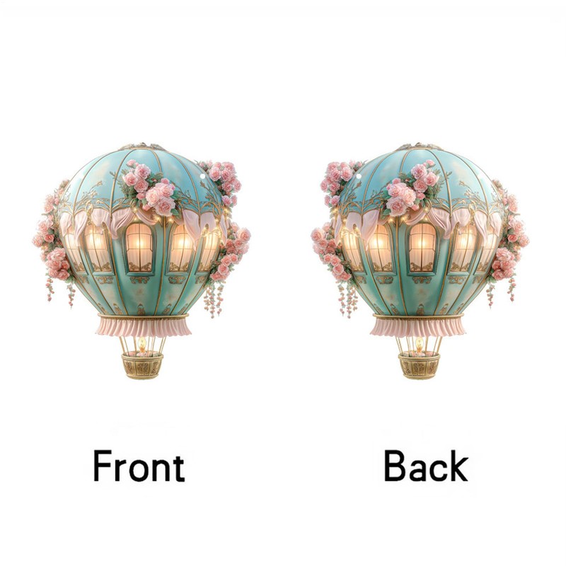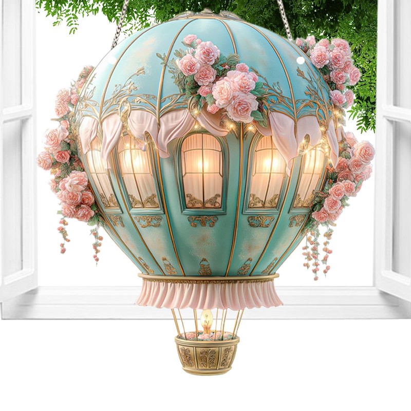 Solar-Heißluftballon-Laterne mit Flamme, Heißluftballon-Licht, 2D-Acryl-Modell, Fensterdekoration, Anhänger für Hof, Freunde, , Garten, Weg, Hof, , Terrasse, Camping, Versammlungen