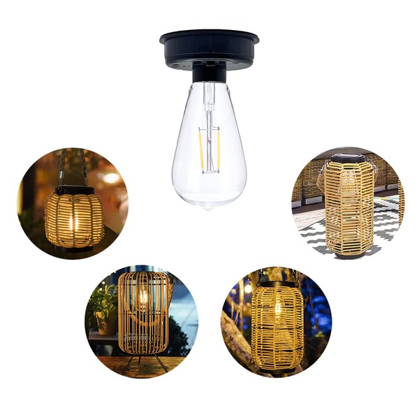 • Contains a polycrystalline solar panel.Warm white LED imitation tungsten filament light bulb; Included 1xAA 600mAh battery.