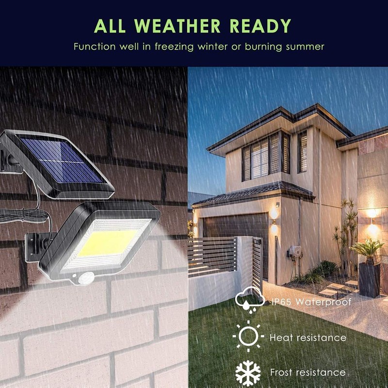 1、[Split design]: Compared with traditional solar lights, we separate the solar panel from the main body. Install the attached 5m waterproof cable to install the solar panel in a sunny place to store more energy during the day. Through the split design, it can be used indoors or outdoors, in the pavilion, and in places where the sun cannot reach. Use solar lights. 2、[High conversion efficiency and long working time] High brightness COBwhite light, COB lamp beads have higher brightness and longer life, 1200mAh battery, the maximum lighting area is about 40 square meters, and the luminous flux brightness after fully charged is as high as 300 , The maximum brightness can last about 8-10 hours. Equipped with an upgraded motion sensor, it can provide a powerful motion sensitivity of 3-5 meters and a wide sensor angle of 120 degrees. 3、[Solar sensor light with 3 smart modes] The latest solar street light has 3 smart modes for you to choose: ①When a person comes, the light is bright, and when a person goes, the light is off. ②Induction mode, when there is no one, the light will be dim, and when people come, it will be highlighted; ③The light will be on automatically when it is dark, and the light will go out at daylight. Can meet your different requirements. 4、[Easy to install] You can use the included screws to install the solar light on the wall without any power supply. The ideal installation height is 1.8-2.5m. Solar wall lights should be installed in sunny places. The solar panel can be adjusted to various angles to ensure that the solar panel can absorb enough sunlight from sunrise to sunset. 5、[IP 65 waterproof and wide application]: Using advanced ABS material, IP65 waterproof, heat-resistant, adaptable, equipped with PTC technology protection, even in snow, rain, wind and high temperature and other weather can also protect the street lights can be normal jobs. It is widely used in gardens, courtyards, lawns, walls, garages, terraces, porches, stairs, bedrooms, restaurants, storage rooms, etc.