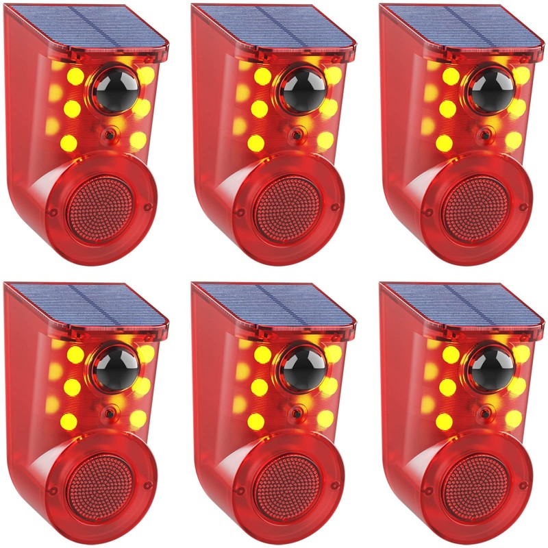 Solar Motion Sensor Alarm Device - Waterproof, Multi-Mode, Wide-Angle Sensing, 110dB Alarm & Strobe Lights for Indoor & Outdoor Security 6Pack