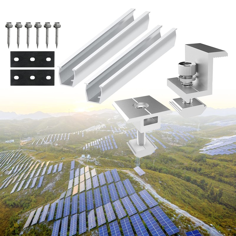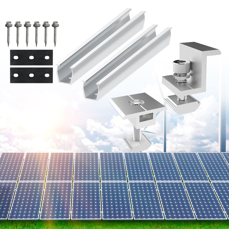 - EASY TO INSTALL: The photovoltaic aluminium alloy bracket comes with a complete kit, and the quantity is enough to meet your installation needs. This type of installation reduces the suction effect on the outer skin of the roofing by the weight of the PV system.