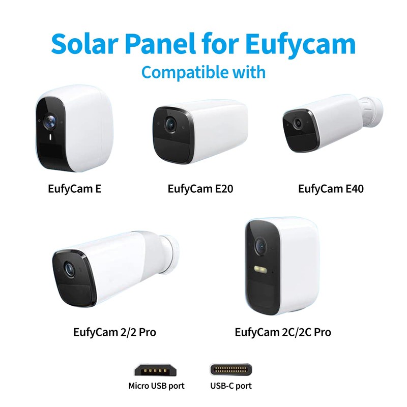 - 【Compatible with】Solar Panel Compatible with Eufycam 2C/2C Pro/E40/E20/2/2 Pro/E or other security camera