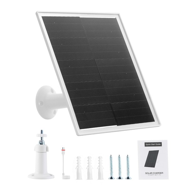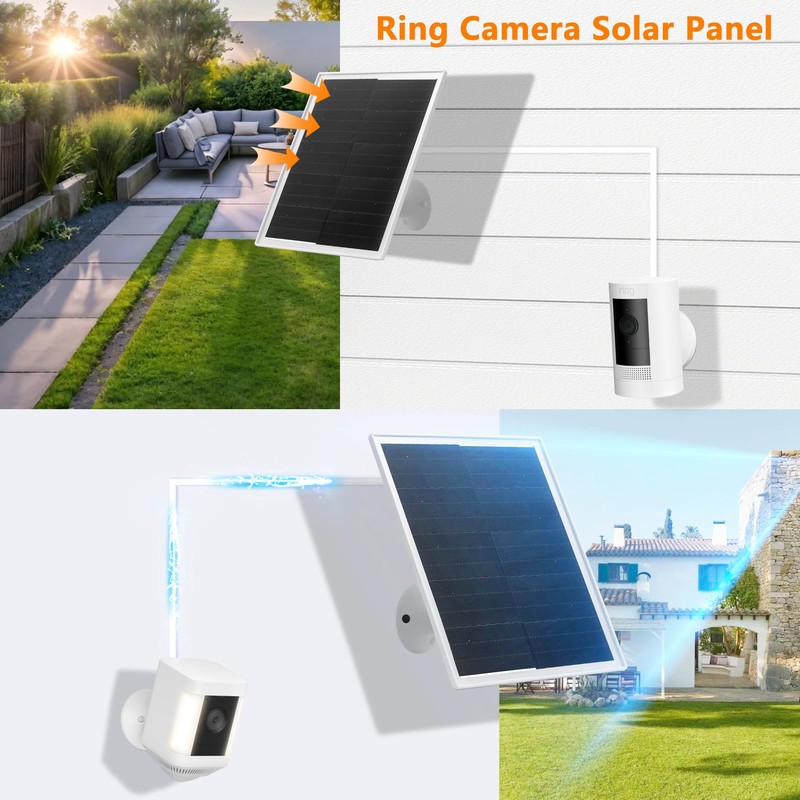 - 【Packages Include】1x Ring Solar Panel, 1 X 3m(9.5ft) DC Cable, 1 X 360-Degree Mounting Bracket, 1x type C to DC Plug adapter cable,a pack Circle cable clips with steel nail, Camera Not Included.