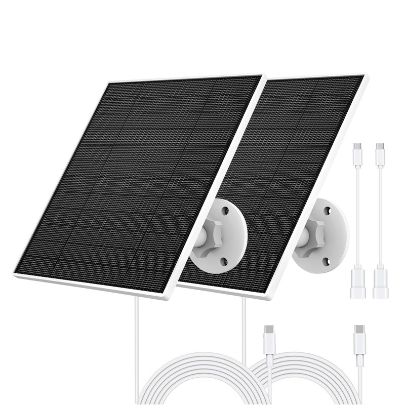 Solar Panel for Eufy Camera, 5W Solar Panel Compatible with Eufycam 3/3C/2/2 Pro/2C/2C Pro/E/E20/E40/L20/L40, Solar Charger for Eufy Camera with USB-C Port, Micro USB Adapter, IP65 Waterproof, 2 Pack