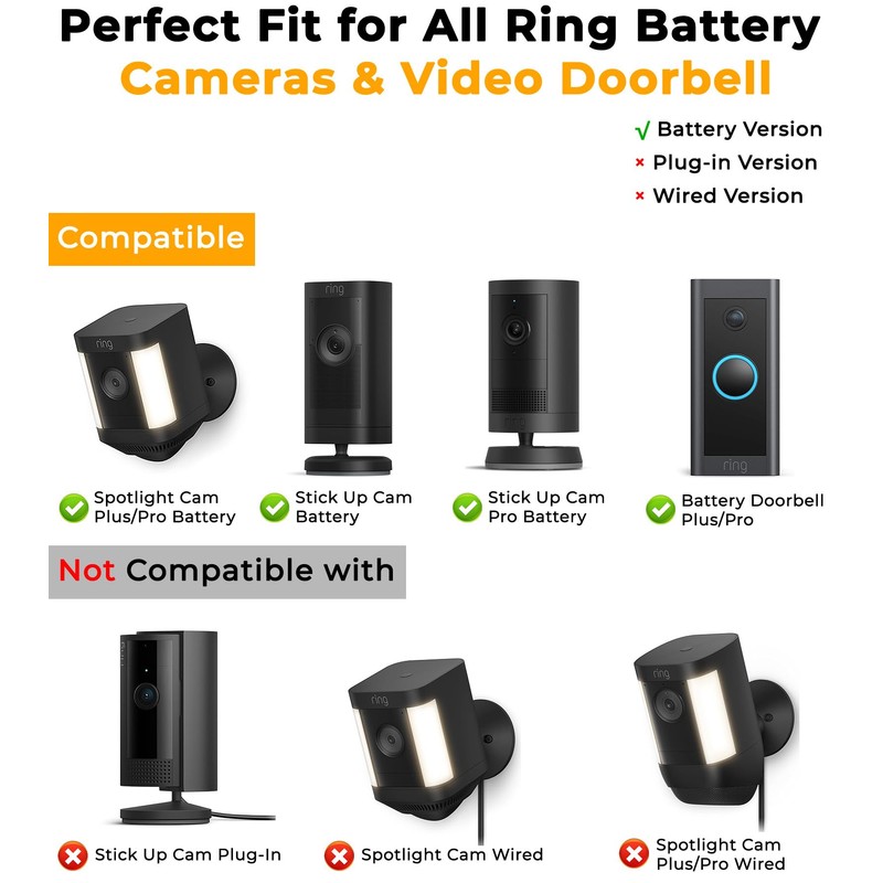 Wide Compatibility - Suitable for Ring Stick Up Cam/Pro Battery and Ring Spotlight Cam/Plus/Pro Battery. Includes USB-C plug + barrel type DC plug adapter.
