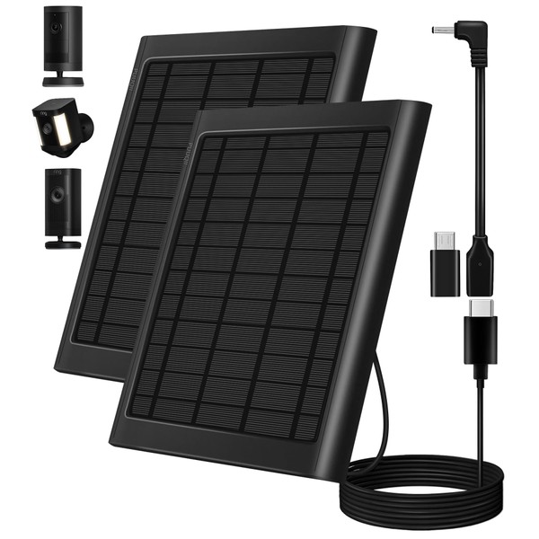 Solar Panel for Ring Camera, 2-Pack 8W Solar Panel Charger Compatible with Ring Stick Up Cam Battery, Spotlight Cam Battery, Includes Barrel Plug to USB-C Adapter, IP65 Waterproof, 10ft Cable
