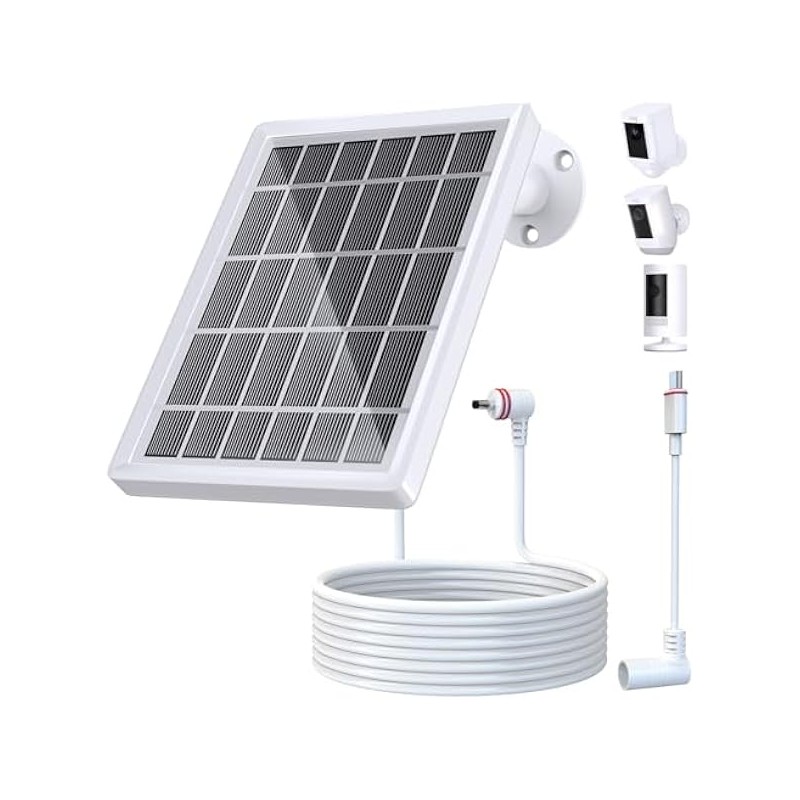Solar Panel for Ring Camera, Solar Panel for Ring Spotlight Cam Plus/Pro/Battery and Ring Stick Up Cam Battery, 6V 3W Solar Panel with 13.1Ft Fast Charging Cable, USB-C and DC3.5mm Ports