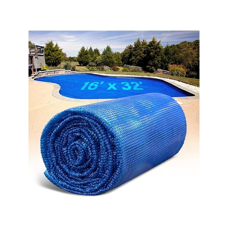 Solar Pool Cover for Inground and Above Ground Pools - 16' x 32' Rectangle 12 Mil Solar Blanket for Inground Pool, Blue