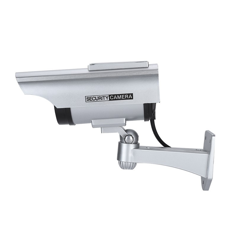 Solar Powered Fake Camera Outdoor CCTV Surveillance Security Camera LED Record(silver)