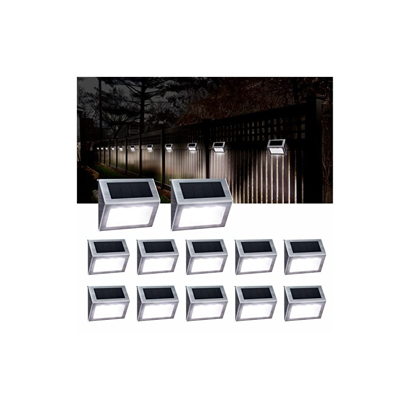 Solar Powered Lights for Deck Steps Stairs Fences Pathway Path, LED lamp, Outdoor Waterproof, White Light 12 Pack