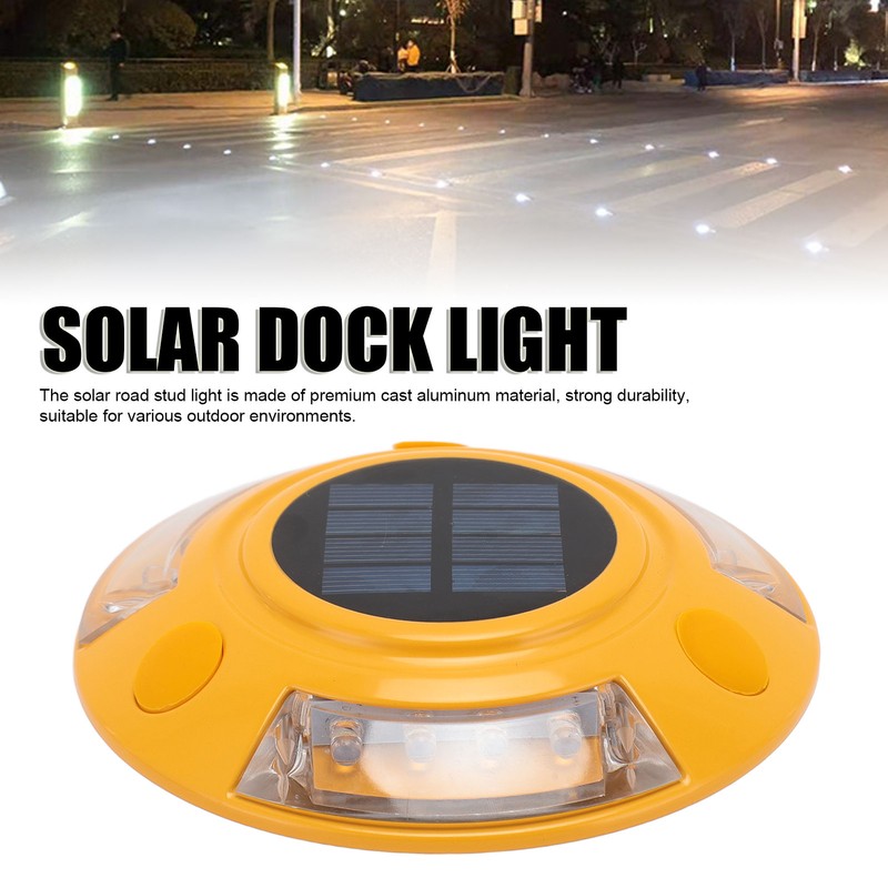 1、Superior Durability: The solar road stud light is made of premium cast aluminum material, strong durability, suitable for various outdoor environments. 2、No Wiring: LED road stud light adopts solar power design, no wires connection, convenient installation, save time and effort. 3、Intelligent Sensing: Automatic light control sensor design, lights up automatically at night, automatic closing during the day, intelligent energy saving. 4、High Brightness: Solar dock light adopts high brightness LED lamp beads, excellent lighting effect, provide better safety lighting for the road. 5、Waterproof Design: This solar dock lamp adopts IP68 grade waterproof design, which can work normally under all kinds of bad weather conditions.