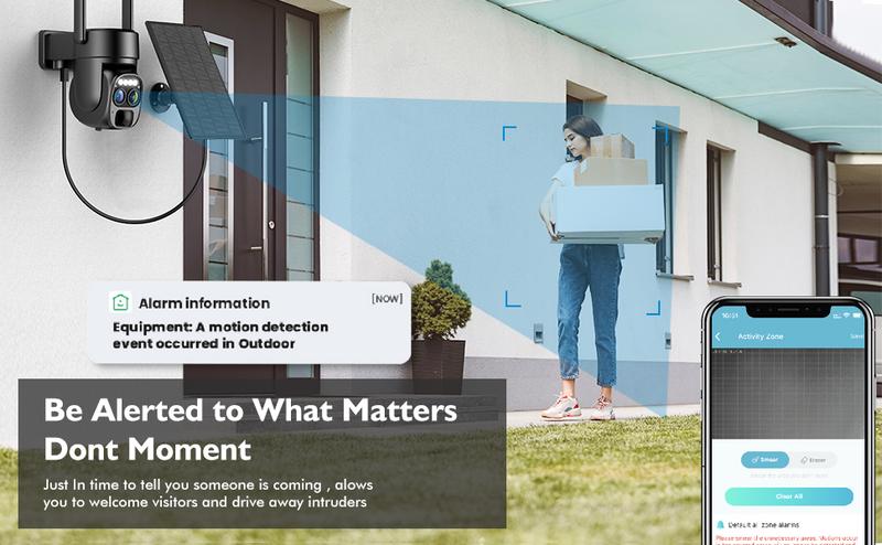 Solar Security Wireless Outdoor Camera,10X Zoom,2K Resolution 360° Pan Tilt Control,WiFi Battery Powered Camera with Spotlight Siren PIR Motion Detection