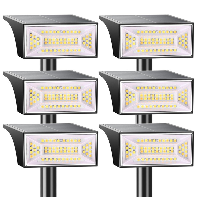 Solar Spot Lights Outdoor, 56 LED Landscape Spotlights Cool & Warm White Modes, 6 Adjustable Brightness Levels, IP68 Waterproof Garden Lights for Pathway - AUTO ON & OFF (Cool & Warm White, 6 Pack)