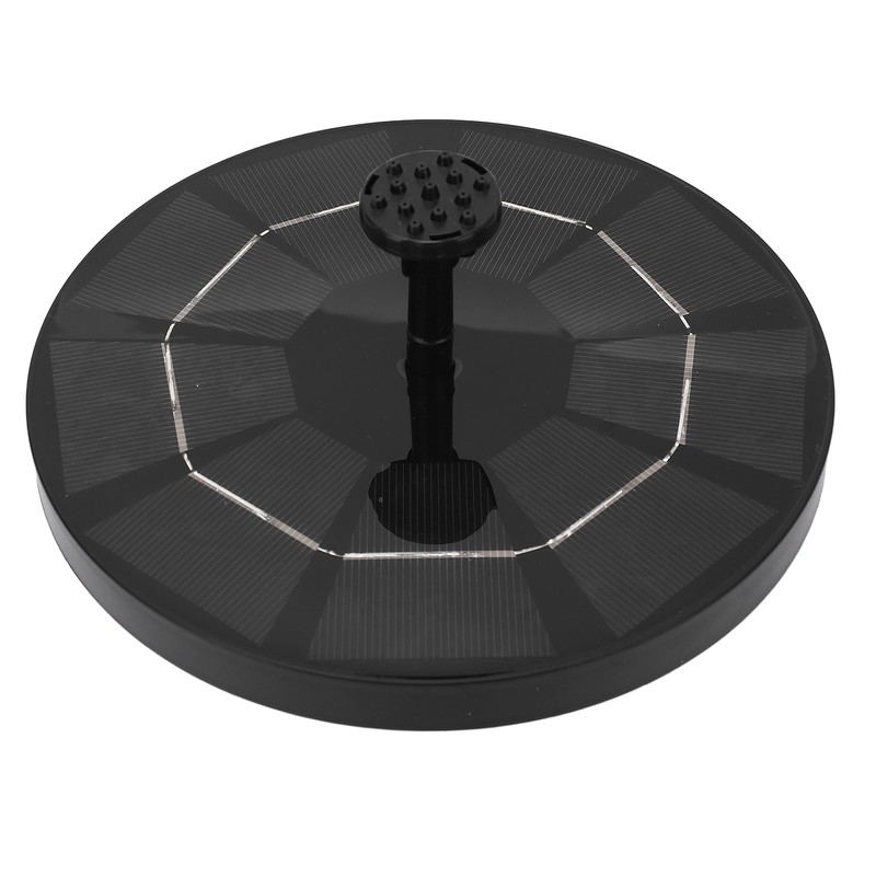 1、HIGH EFFICIENCY SOLAR PANELS: The 3.0W solar bird bath fountain is powered by solar energy. Solar panels work immediately when placed in sunlight. The more sunlight the better effect, and the fountain will bring you unexpected beauty 2、SIX SPRAY MODES: The solar fountain contains six different nozzles that produce different spray shapes and patterns. The height can be adjusted by changing the nozzle to avoid splashing out of the basin. Spray height up to 27.56 inches. You can easily replace the nozzle 3、ECO FRIENDLY AND MULTI PURPOSE: This solar powered fountain pump does not require any power battery, no additional power supply and is very environmentally friendly. 7.09in diameter is perfect for bird bath, fish tank, pond, swimming pool, garden, outdoor, oxygen circulating water. This fountain attracts hummingbirds, which is fun 4、EASY TO USE: Simply place the solar fountain in the sun and will start spraying water. Suction cups at the bottom effectively hold the fountain in place, keeping from floating in the birdbath. The fountain doesn't require complicated installation or much maintenance 5、USAGE SUGGESTION: Make sure you have poured enough water into the basin so that the pump can fall completely underwater. You should clean the pump regularly to avoid dust clogging. Solar panels need to be kept clean, and shading by leaves or stains can interfere with the conversion of solar energy, doesn't store any energy, so rests at night to ensure a longer life
