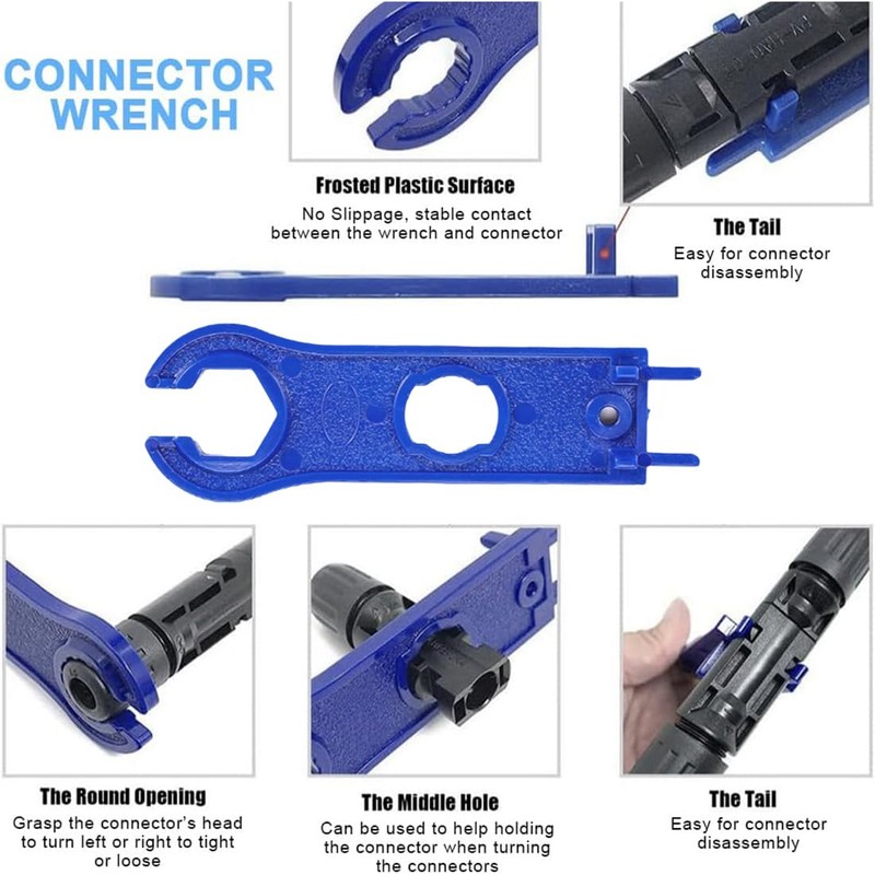 - Multifunctional: Suitable for mounting and disassembling connectors, with three adjustable locking systems for solar connectors, ideal for professionals and beginners.