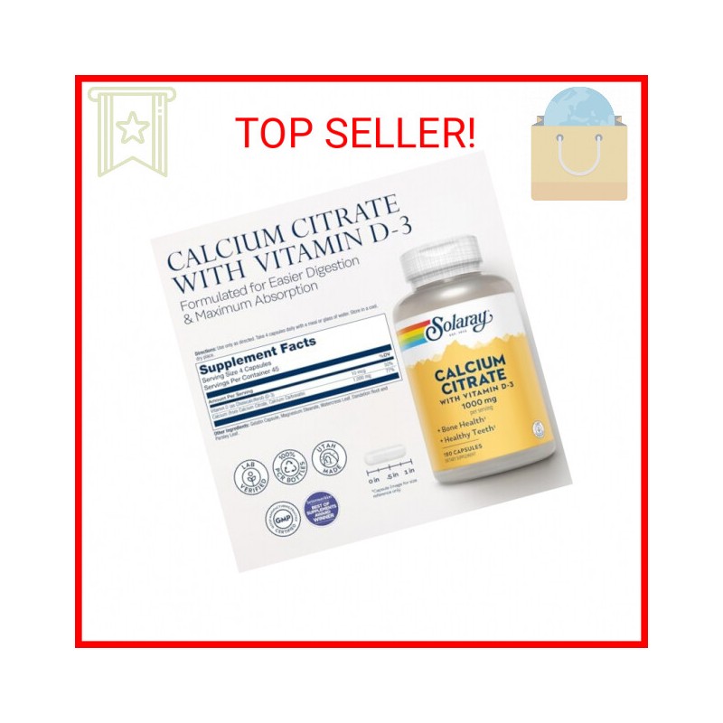 Solaray Calcium Citrate with Vitamin D3 1000mg - Bone Strength and Healthy Teeth