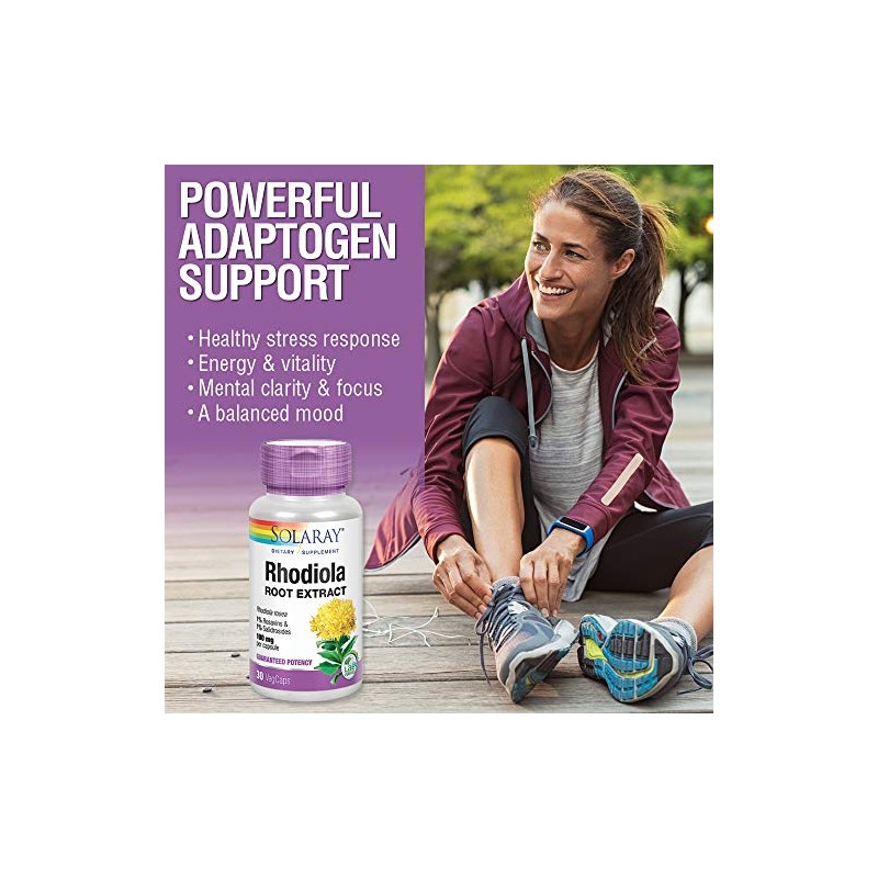 SOLARAY Rhodiola Root Extract 100 mg | Herbal Adaptogen for Occasional Stress & Mood Support | 30ct