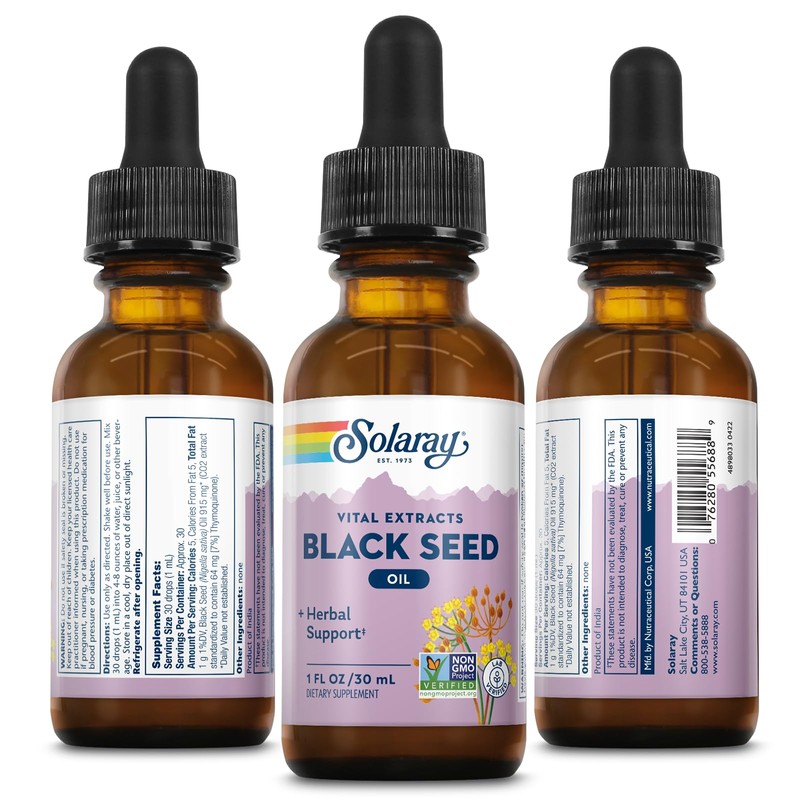 SOLARAY SOLARAY Black Seed Oil Extract - Cold Pressed Black Seed Oil - Super Antioxidant for Immune Support, Hair, Skin, Digestion, and Joints - Non-GMO, 60-Day Guarantee - Approx. 30 Servings, 1 FL OZ