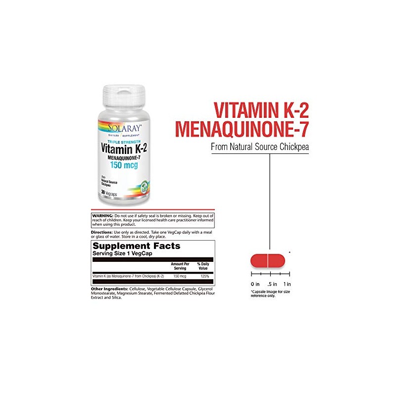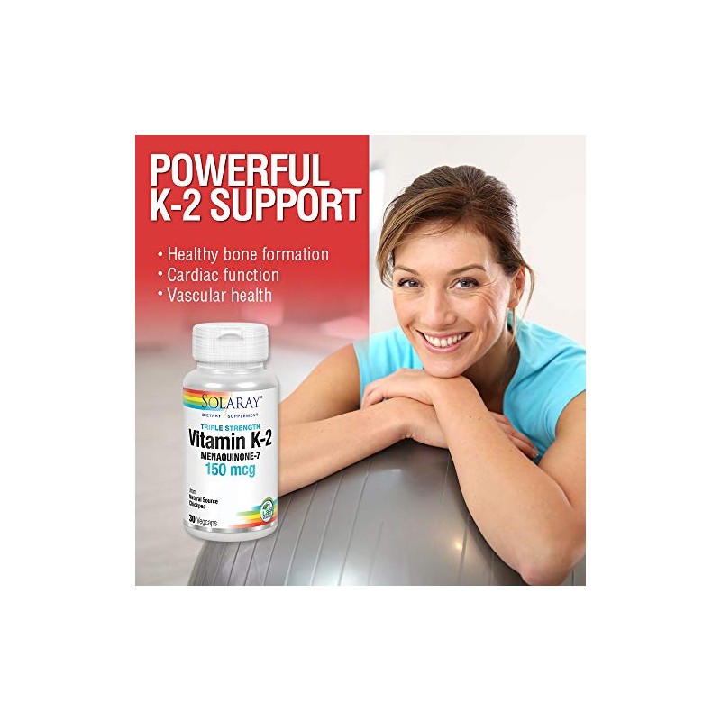 SOLARAY Triple Strength Vitamin K-2 as MK-7, 150 mcg | Heart & Bone Health, Vascular Function Support | 30ct