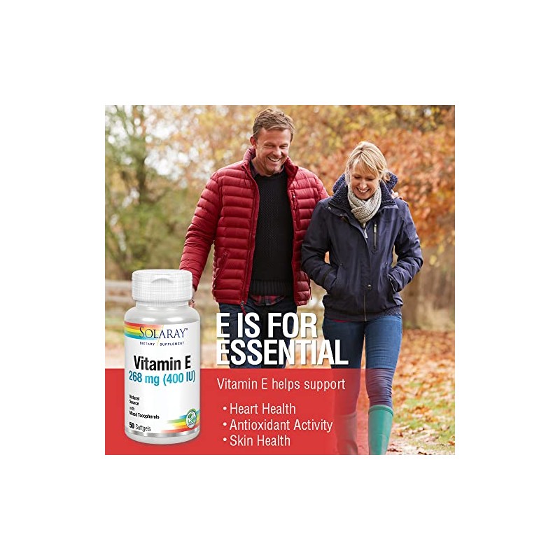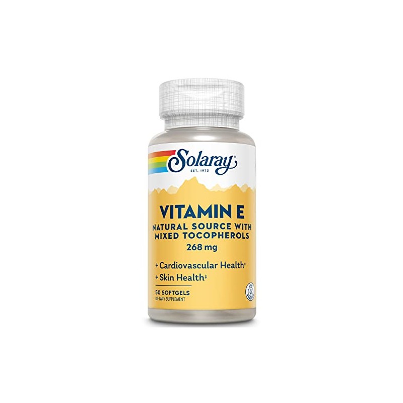 SOLARAY Vitamin E d-Alpha Tocopherol 268mg (400 IU) | Heart & Skin Health, Antioxidant Activity Support (50 CT)