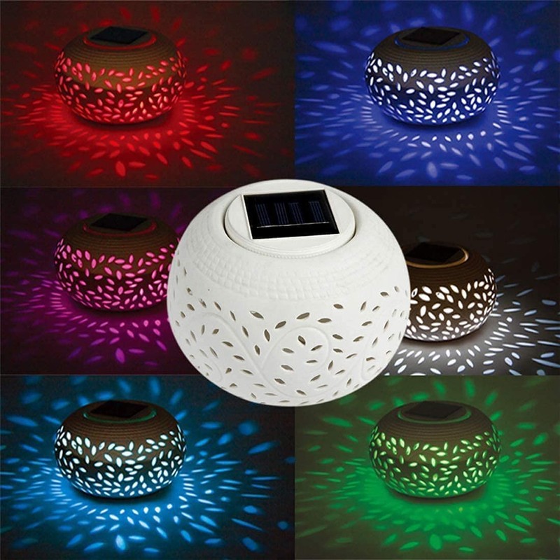- ✅IDEAL GIFT - Attractive and Practical: The ceramic colour-changing LED solar filament is the ideal centrepiece for any garden table. It is both attractive and practical, looks great on my glass coffee table and in my small patio, another part of my small garden. Just the right size ,and looks great in the evening, It’s a lovely centrepiece for my outdoor dining table. It’s pretty during the day and gives out good light at night