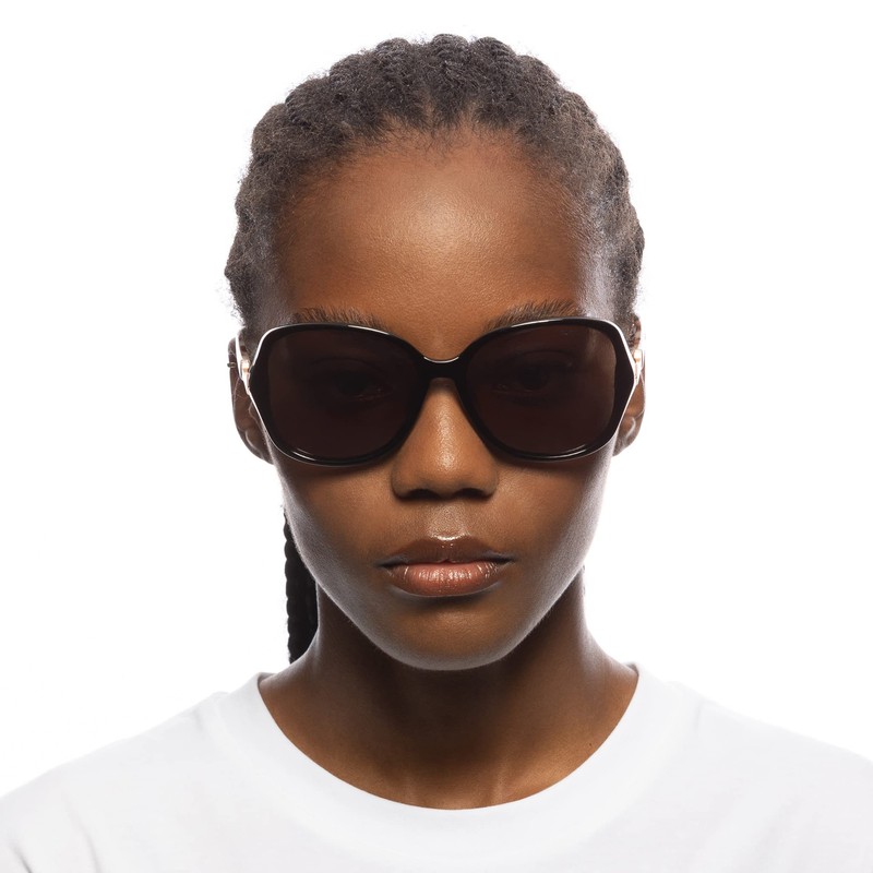 - Colour notes: Finished in a black and cookie tort frame with brown mono polarized lenses.