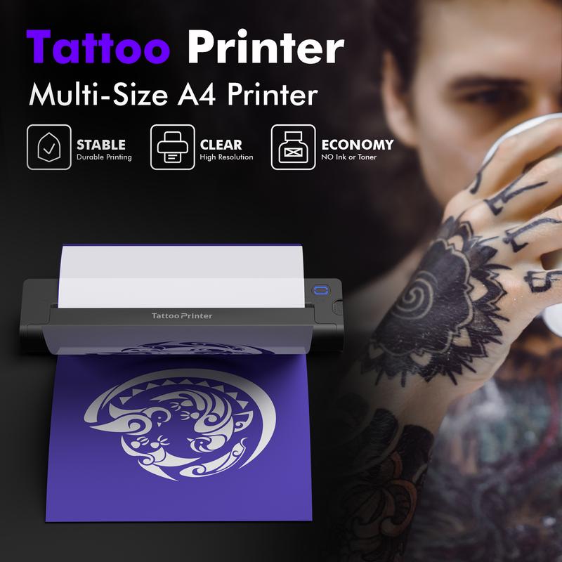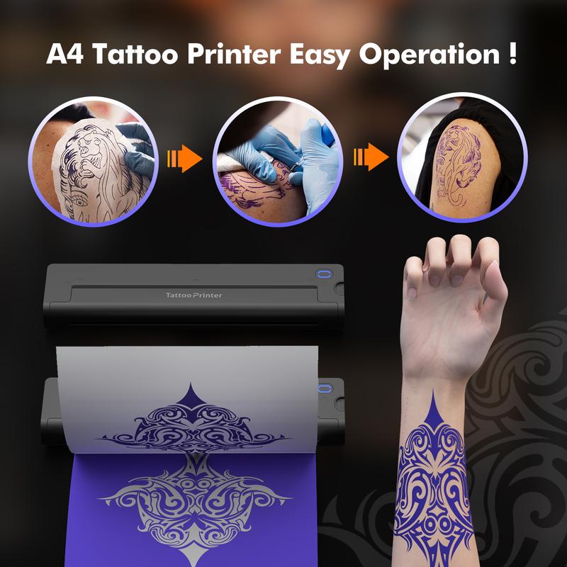 • Good-Quality & Inkless Printing - Solarsun A41 wireless tattoo stencils printer uses advanced thermal technology to print clear and precise patterns and lines. You won't have to deal with ink-related blockages or cleaning problems, ensuring an efficient and hassle-free process for professional tattoo artists. This allows you to focus on creating high-quality temporary or permanent tattoos for your clients.