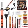 - 【Easy Temperature Adjustment】80W soldering iron set, LCD display, and knob for temperature adjustment (200°C to 450°C). At the same time, the soldering iron is made of high temperature resistant materials, ensuring high accuracy and constant temperature. The welding head is firmly supported and difficult to fall off. Meets all requirements for welding projects