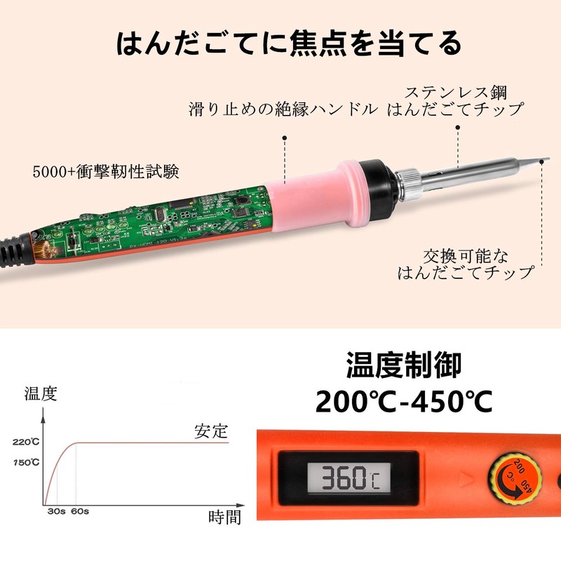 - High Quality Ceramic: The soldering iron uses ceramic induction technology that uses internal heating, high sensitivity and heats the heater core quickly from 200°C to 450°C). Longer life and safer than traditional soldering iron. Heating speed is twice as long as traditional soldering iron