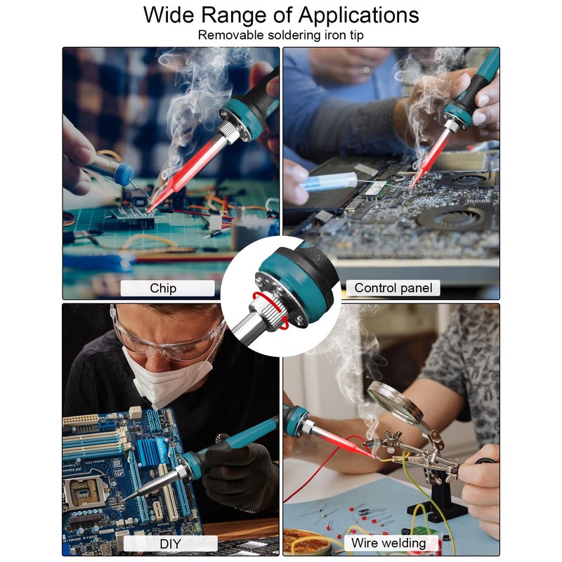 In summary, this soldering iron tool combines compatibility, rapid heating, temperature adjustability, safety features, and portability, making it a comprehensive solution for welding tasks in diverse settings.