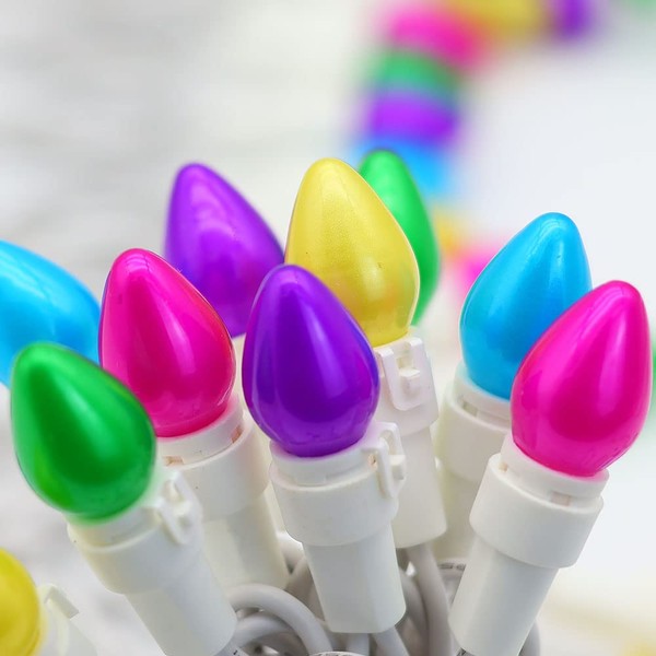- LED Multi Color Glass C3 Lights: Our 50 count per Easter lights string with bulb space 0.25ft. Lighted length 12.5 ft (3.8m). Total length 13.5ft(4.1m) LED bulbs. use up to 80% less power than incandescent bulbs.