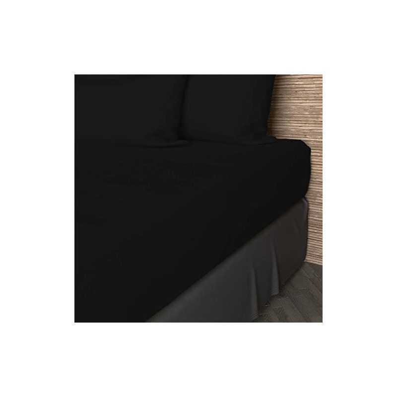 - Fitted Sheet Cotton 57 Thread Count 140 x 200 cm Plain Black