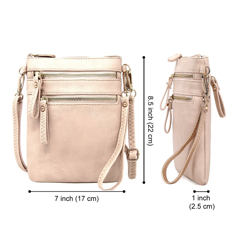 Solene Women's Faux Leather Organizer Multi Zipper Pockets Handbag With Detachable Wristlet Crossbody Bag-WU002(Nude)