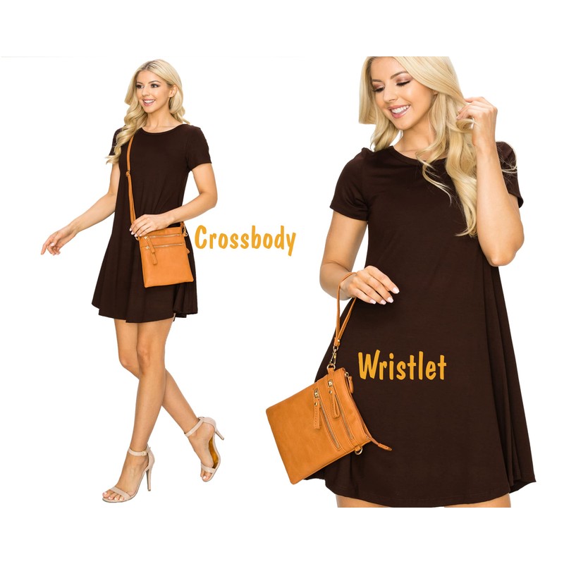 - Rich Faux Leather Wristlet and shoulder Handbag with High quality Gold Tone Hardware